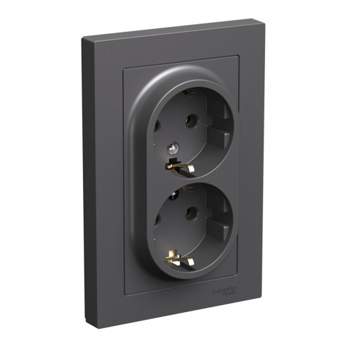 ATN001424 Atlasdesign РОЗЕТКА двойная с заземлением, 16А, в сборе, БАЗАЛЬТ Schneider Electric