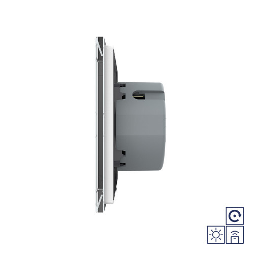 Устанавливается в круглый подрозетник в комплекте со стеклянной лицевой панелью (в комплекте).