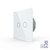 Двухклавишная сенсорная кнопка с сухим контактом с функцией радиоуправления со стеклянной лицевой панелью с помощью пульта ДУ используется, когда выключатель не должен напрямую управлять источником света, а должен подавать сигнал на реле для модуля, который управляет источником света.