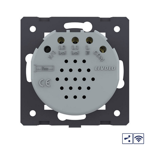 Технические характеристики Двухклавишный проходной сенсорный выключатель Livolo Quadro с функцией радиоуправления, цвет белый (механизм) VL-Q7-02SR-11