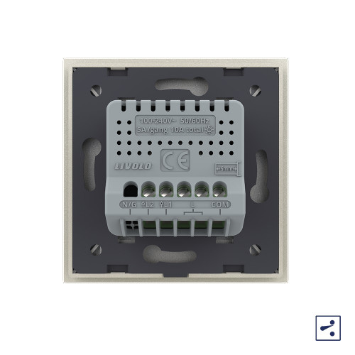 Технические характеристики Двухклавишный проходной/перекрестный сенсорный выключатель Livolo, 1 пост, цвет жемчужный