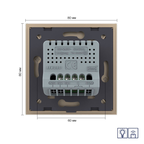 Для управления освещением с пульта ДУ, выключатель необходимо подключить к пульту дистанционного управления LIVOLO VL-RMT-02 (VL-XR002-S70) или VL-RMT-04 (VL-XR004-LS70). Пульт приобретается отдельно. С пультами других производителей не работает.