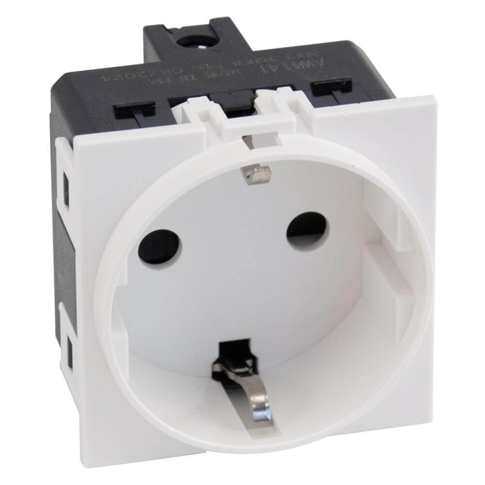 Механизм розетки с заземлением со шторками винтовой зажим 16A белый матовый AW4141