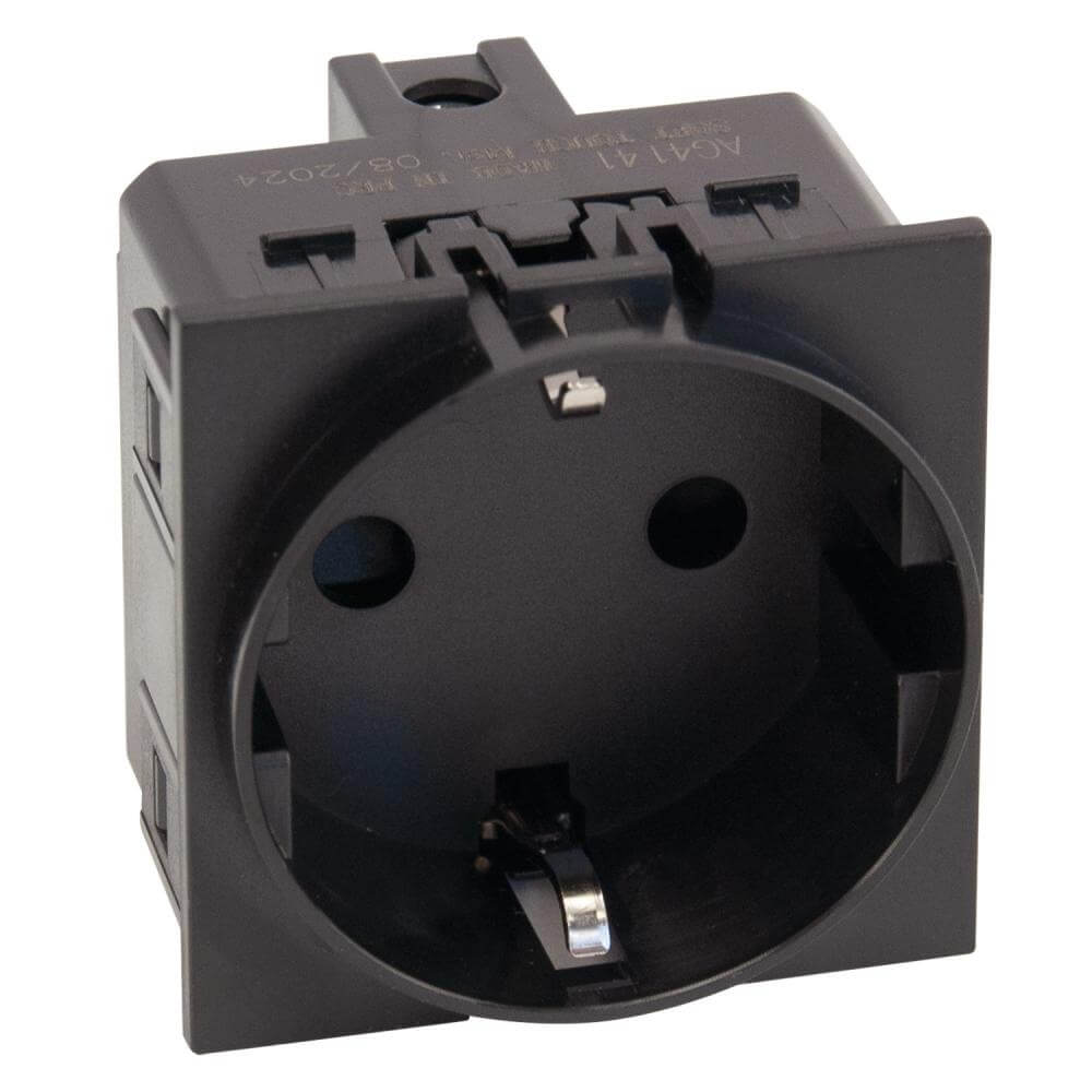 Технические характеристики Механизм розетки с заземлением со шторками винтовой зажим 16A черный матовый AG4141