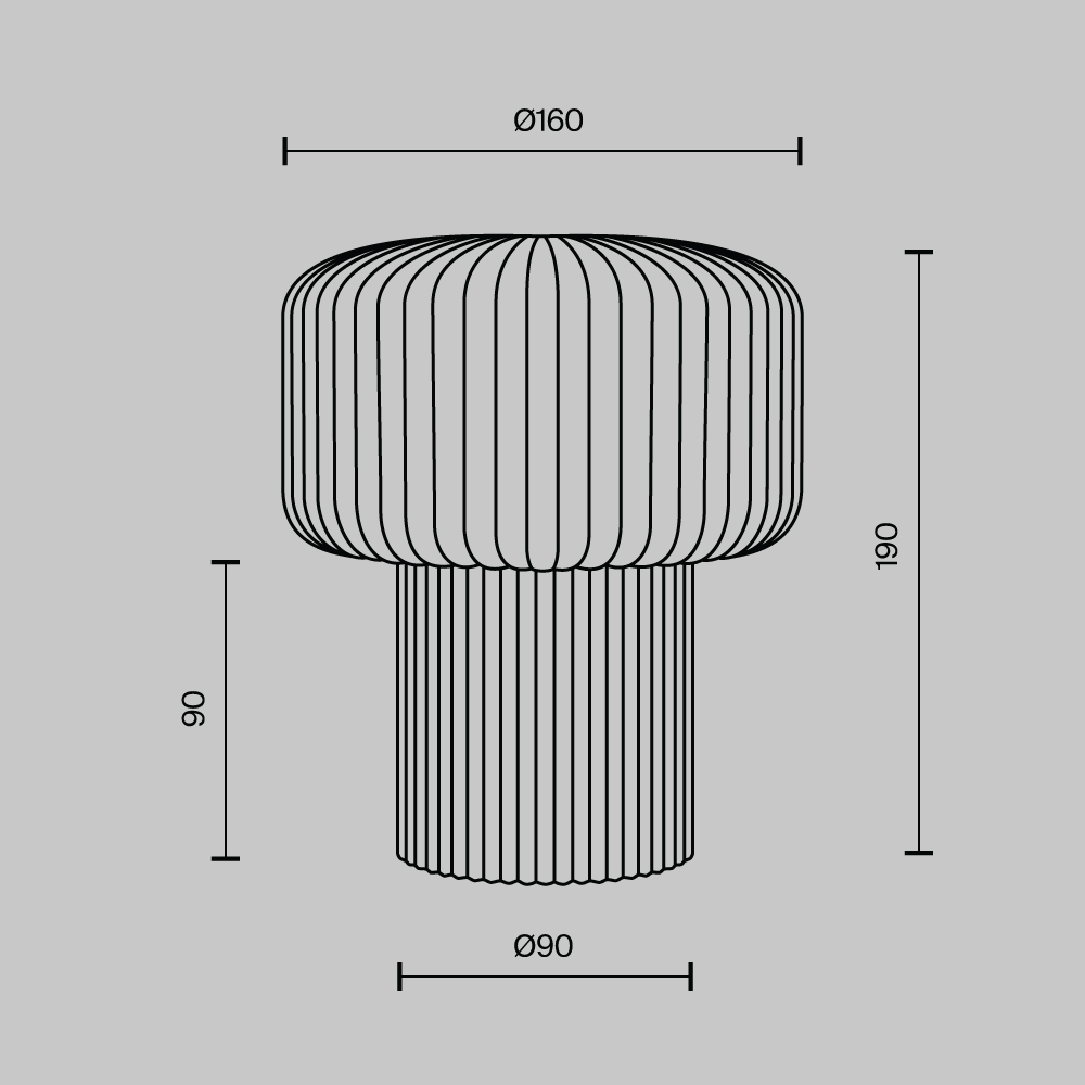 Керамическое основание и стеклянный плафон украшены аккуратным вертикальным рельефом, который станет деликатным акцентом в интерьере и привлечёт внимание. Сочетание белого матового стекла плафона и керамического основания, покрытого матовой глазурью, формирует тактильную и визуальную эстетику. В серии представлены два пастельных оттенка керамики: кремово-белый (RAL 9001) и серебристо-серый (RAL 7001). Цоколь сменного источника света — G9.
