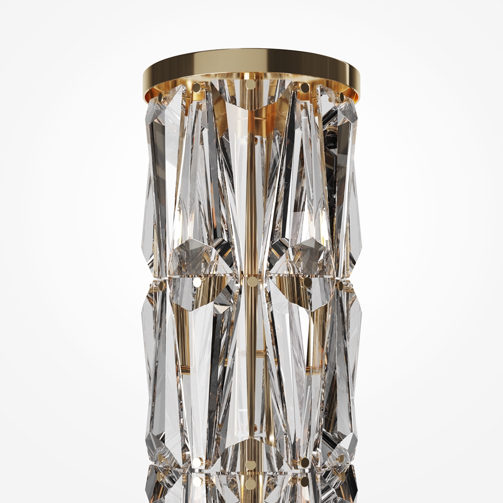 Массивные кристаллы – главная деталь в оформлении светильников Puntes. Серия включает подвесные люстры различного диаметра, настенные, настольные и напольные светильники. Каждая модель представлена в двух классических цветовых вариациях: золотом и хромированном оттенке металлической арматуры. Высота люстр регулируется длиной цепи. Единое цветовое оформление и повторяющийся декоративный элемент позволяют легко сочетать модели серии между собой, продумывать различные световые сценарии и создавать акцентное освещение по зонам.