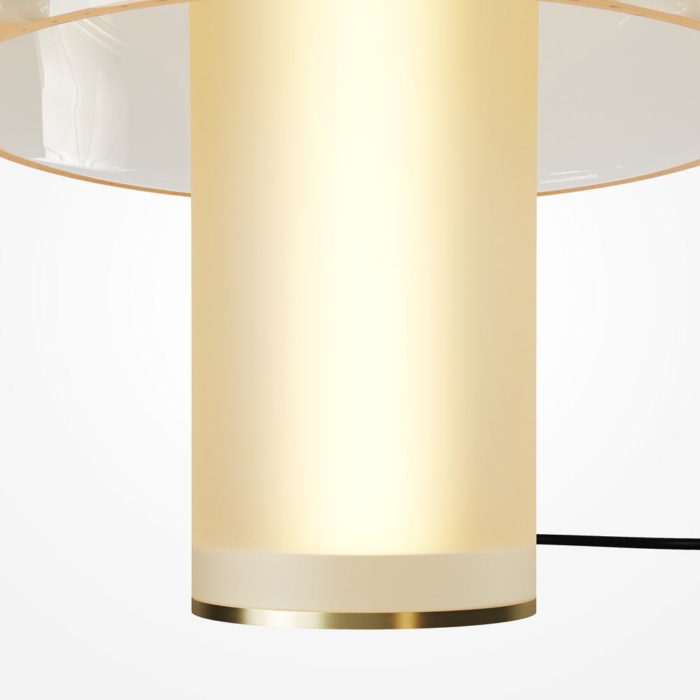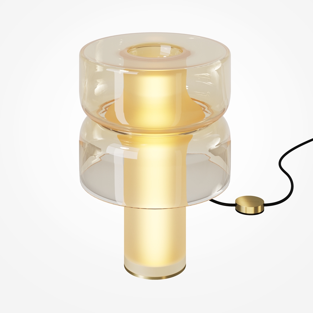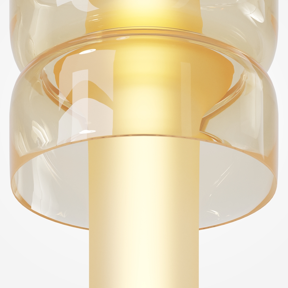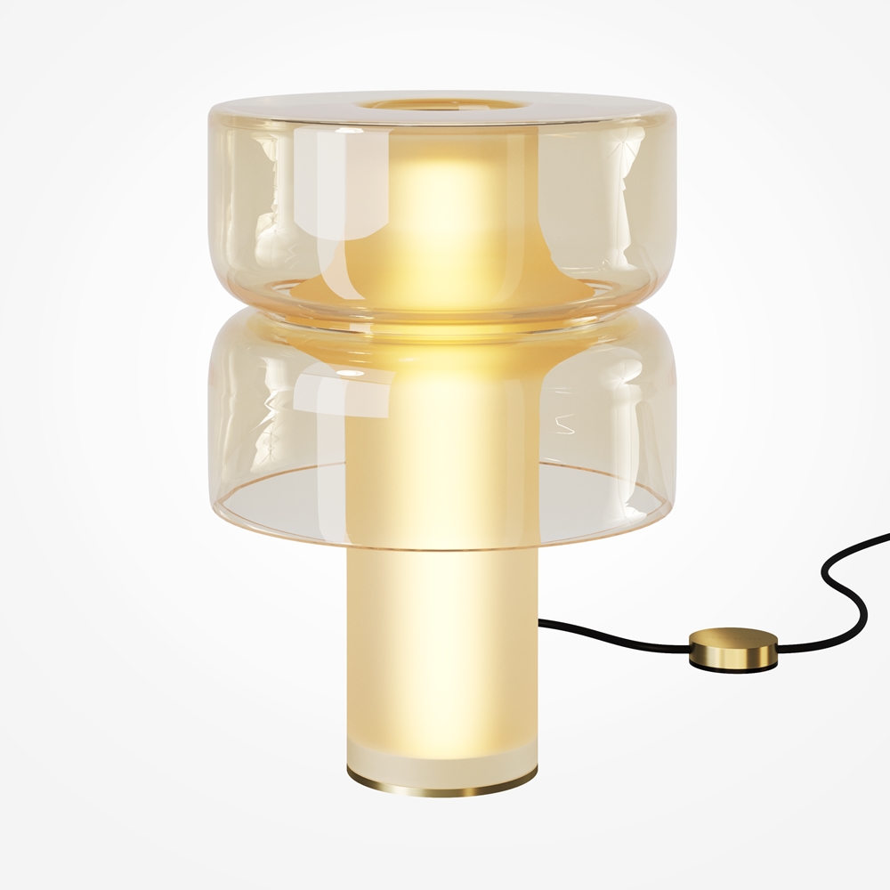 Конструкция каждой модели — это современная поэма о стекле. Светильник собирается по принципу «матрешки» без видимых креплений: на матовое стеклянное основание (серое или янтарное) надевается глянцевый абажур (прозрачный или янтарный), а внутри скрыт LED-источник (3000К) в акриловой трубке-рассеивателе. Это сочетание фактур создаёт сложную игру света. Матовое внутреннее стекло обеспечивает мягкое, равномерное свечение, а сенсор оригинальной формы позволяет включать свет касанием и плавно диммировать его длительным удержанием, адаптируя атмосферу под настроение.