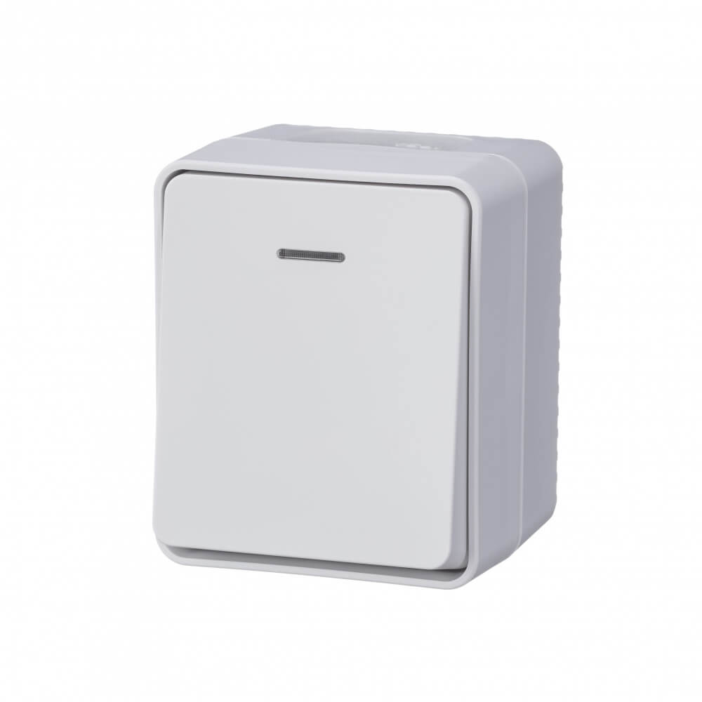 Одноклавишный с подсветкой влагозащищенный выключатель 10А IP54 Systeme Electric AtlasDesign Profi54 белый ATN540113
