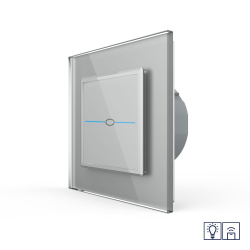 Одноклавишный сенсорный диммер с функцией радиоуправления со стеклянной рамкой LIVOLO Quadro предназначен для регулировки яркости диммируемых ламп одной линии нагрузки с помощью пульта ДУ.