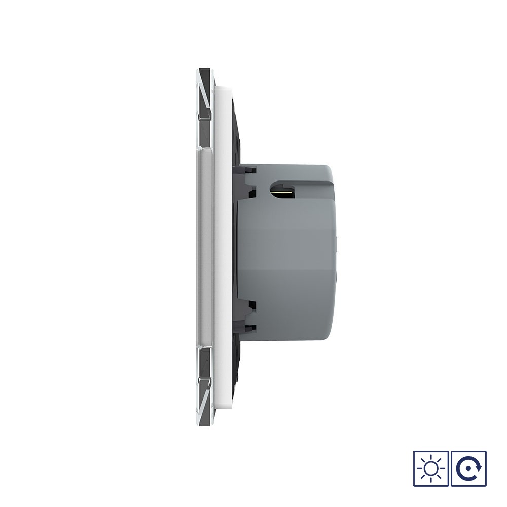 Одноклавишная сенсорная кнопка с сухим контактом со стеклянной рамкой LIVOLO Quadro VL-Q701IH-11 белого цвета используется, когда выключатель не должен напрямую управлять источником света, а должен подавать сигнал на реле для модуля, который управляет источником света.
