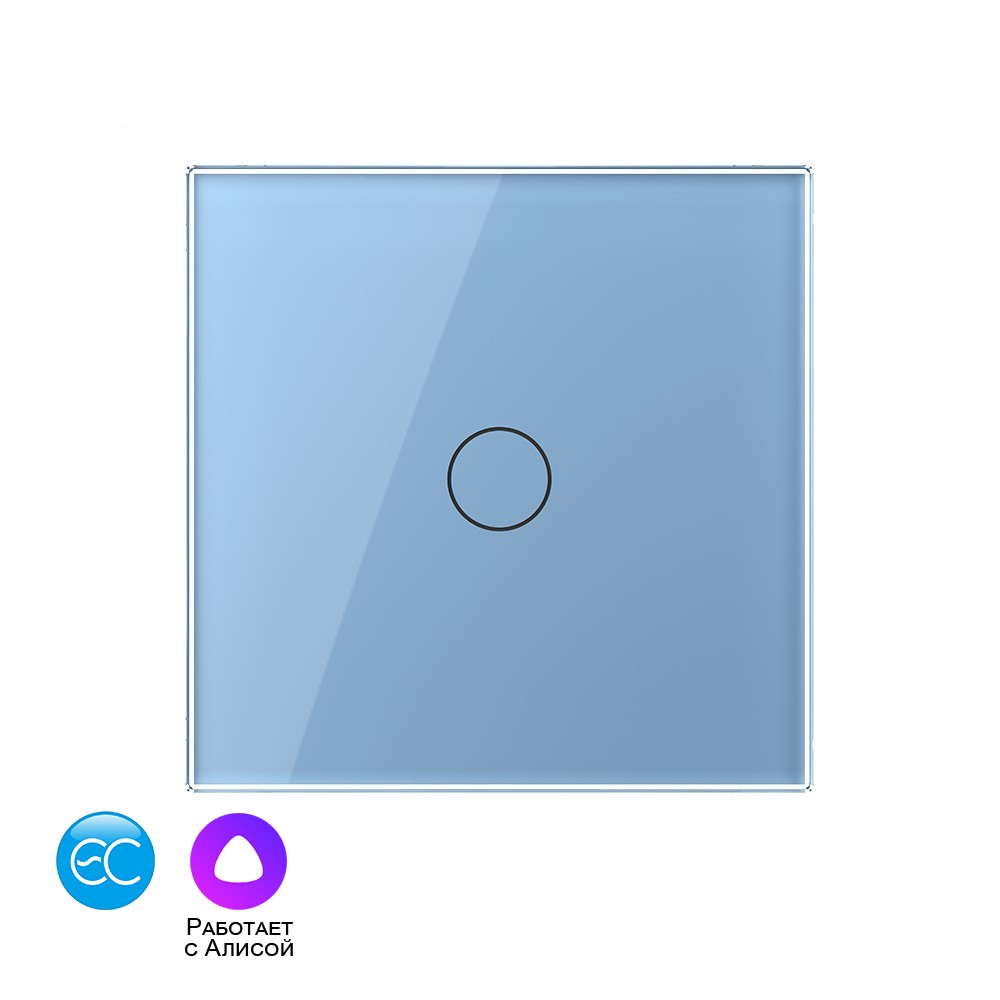 Одноклавишный умный сенсорный выключатель Livolo EC на 1 пост со стеклянной лицевой панелью VL-C701Z2-19 синего цвета предназначен для управления одной линией нагрузки. Поддерживает управление лампами любого типа.