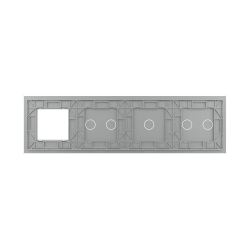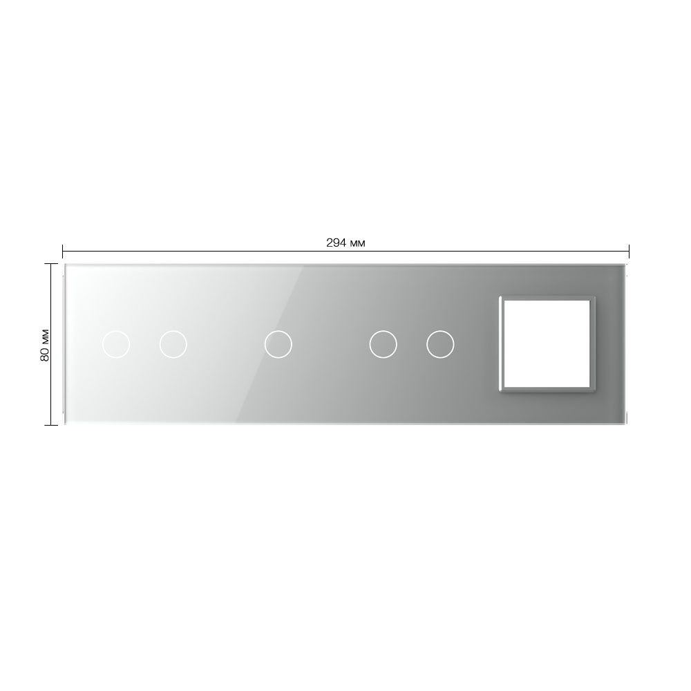 Панель для 3-х сенсорных выключателей и розетки Livolo, 5 клавиш (2+1+2), цвет серый, стекло