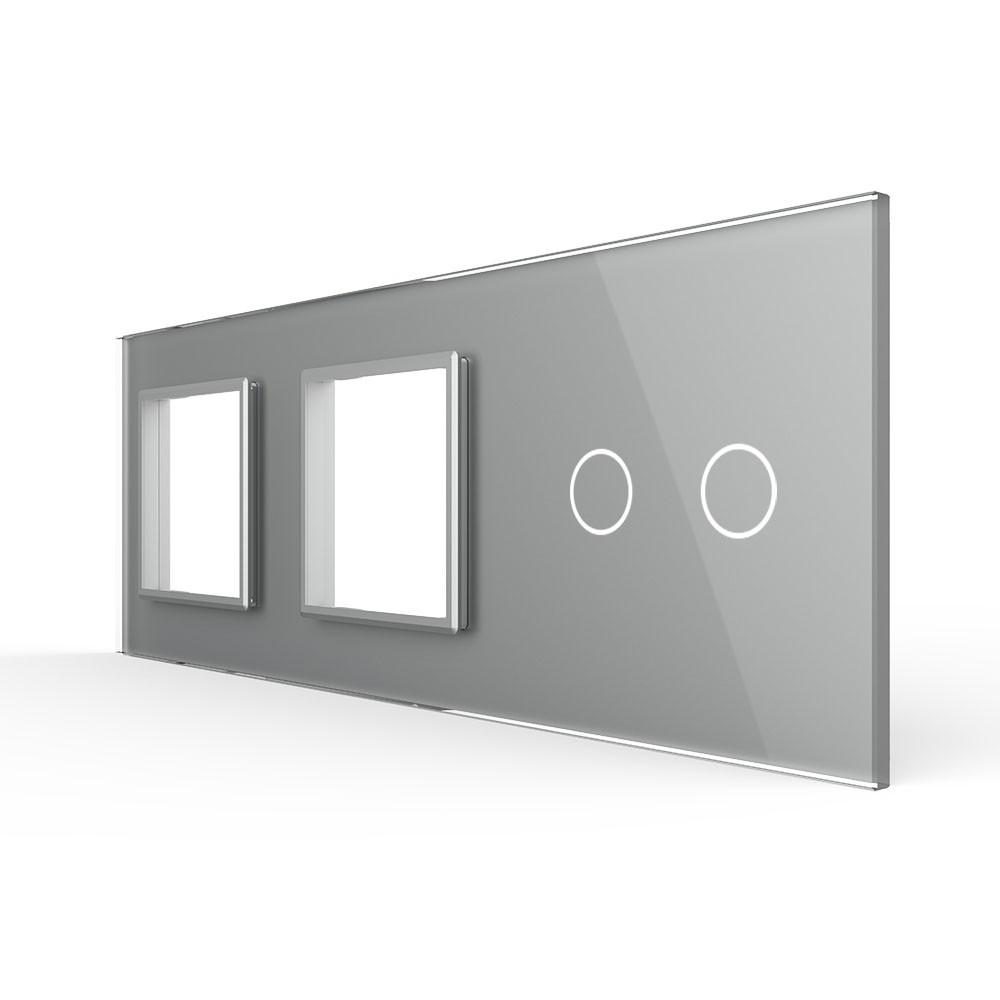 Панель для двух розеток и сенсорного выключателя Livolo, 2 клавиши, цвет серый, стекло