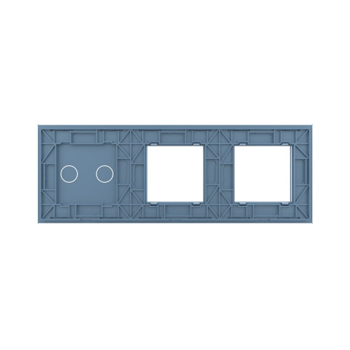 Панель для двух розеток и сенсорного выключателя Livolo, 2 клавиши, цвет синий, стекло