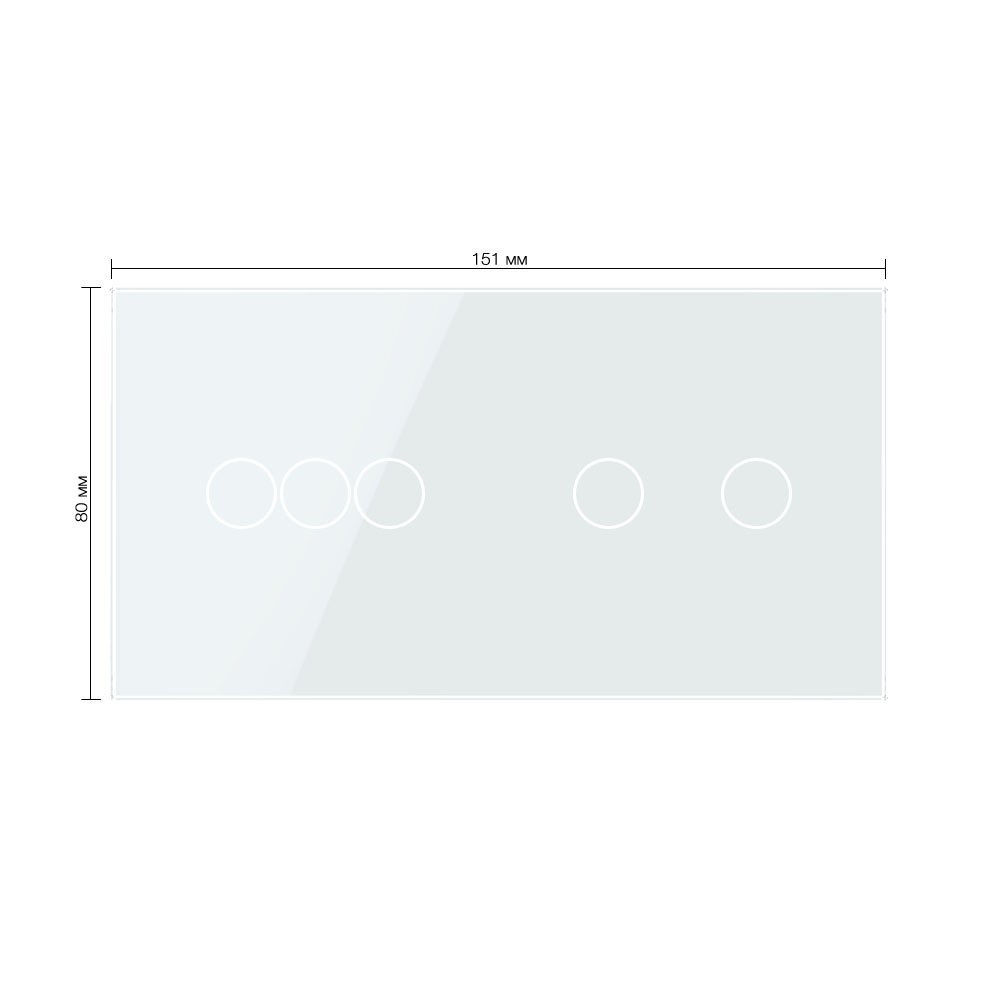 Технические характеристики Панель для двух сенсорных выключателей Livolo, 5 клавиш (3+2), цвет белый, стекло