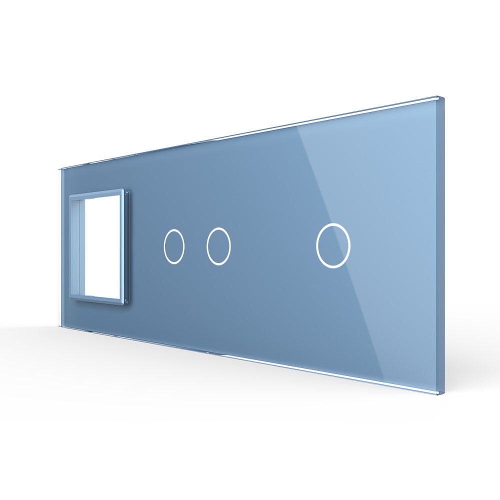 Панель для розетки и двух сенсорных выключателей Livolo, 3 клавиши (2+1), цвет синий, стекло