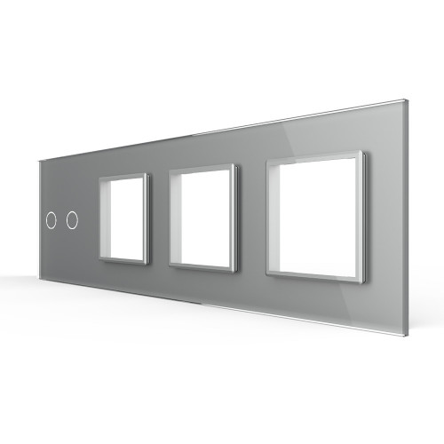 Панель для сенсорного выключателя и 3-х розеток Livolo, 2 клавиши, цвет серый, стекло