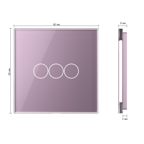 Технические характеристики Панель для сенсорного выключателя LivoloTouch EU стандарт, 3 клавиши, цвет розовый, стекло