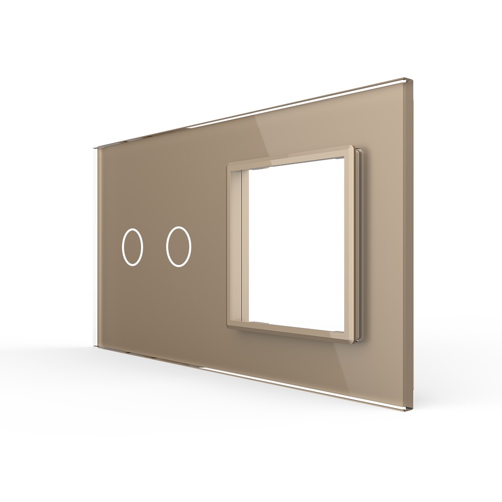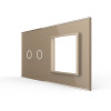 Панель двойная: 2 выключателя + 1 розетка Золотая