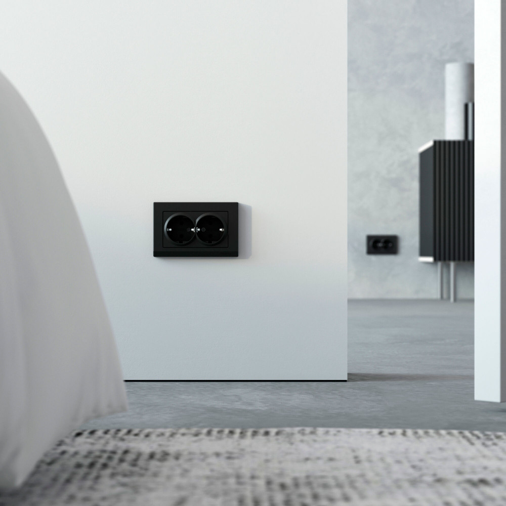 Технические характеристики Рамка из поликарбоната для двойной розетки Stark черный