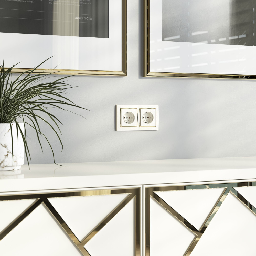 Рамка из поликарбоната на 2 поста Snabb слоновая кость/золото