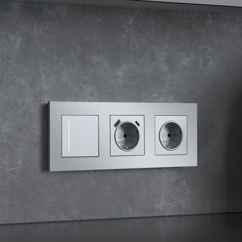 Технические характеристики Рамка из поликарбоната на 3 поста Slab серебро софт