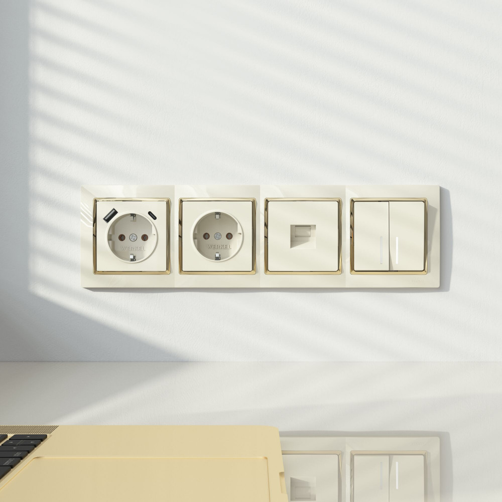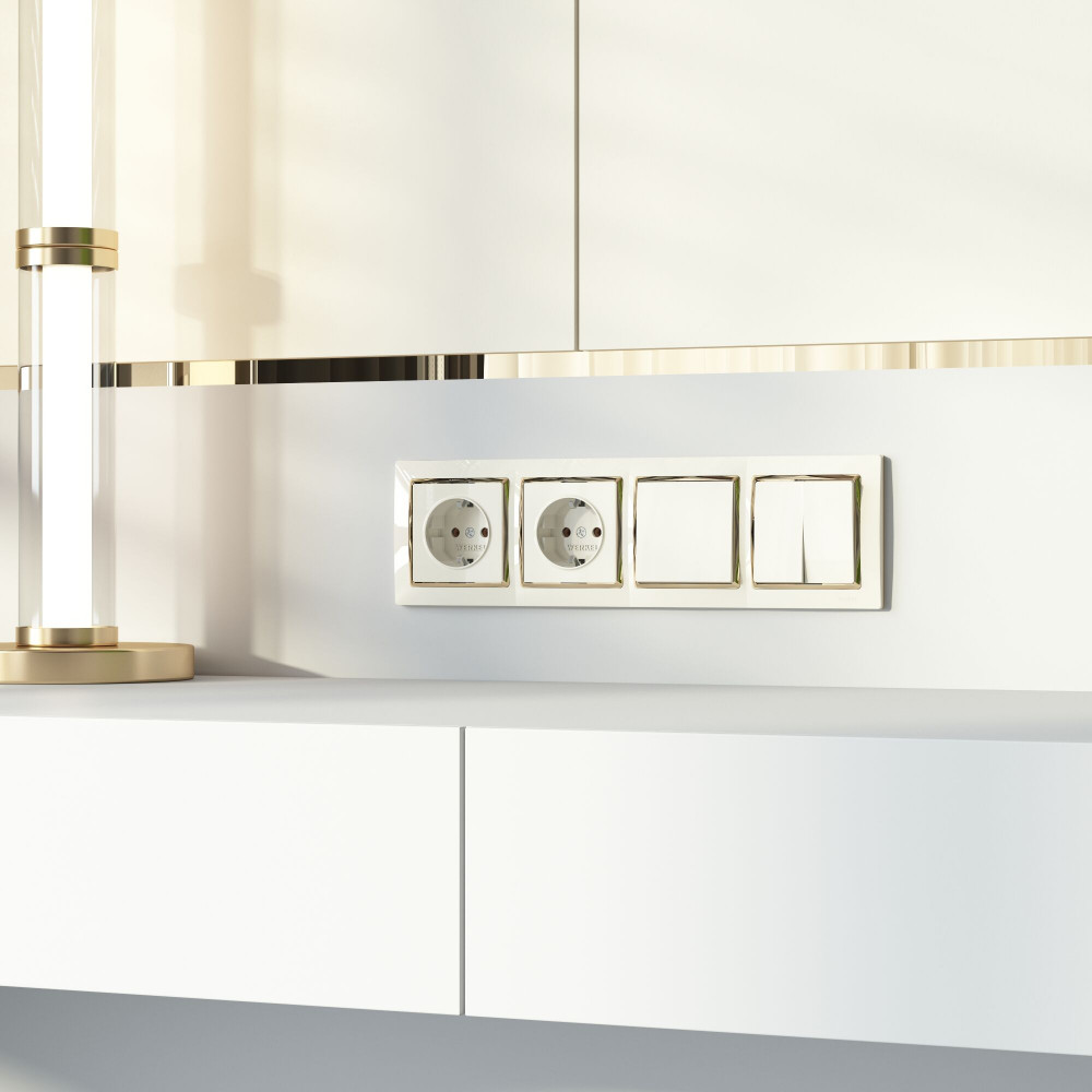 Технические характеристики Рамка из поликарбоната на 4 поста Snabb слоновая кость/золото