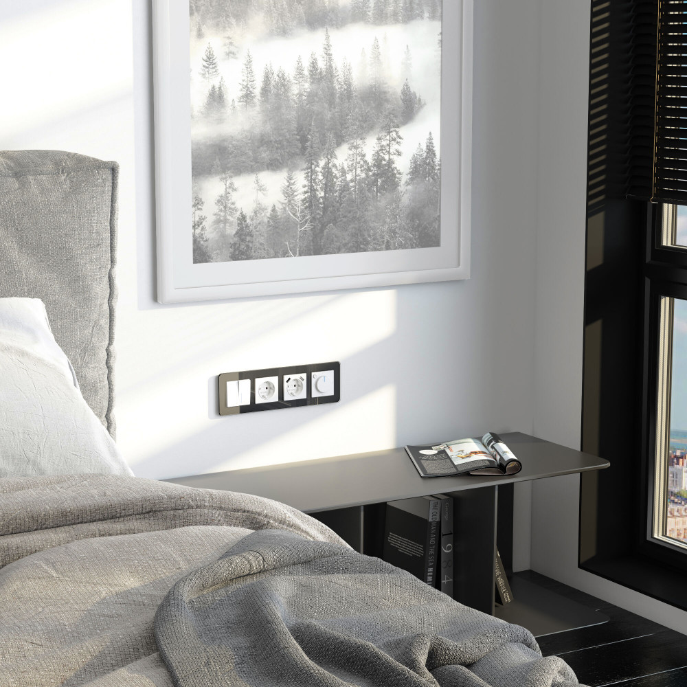 Рамки Elite полностью совместимы со всеми механизмами Werkel — это позволяет создавать идеальные цветовые сочетания и безупречные композиции: розетки, выключатели, диммеры, USB-зарядки и другие устройства выглядят как единое целое.