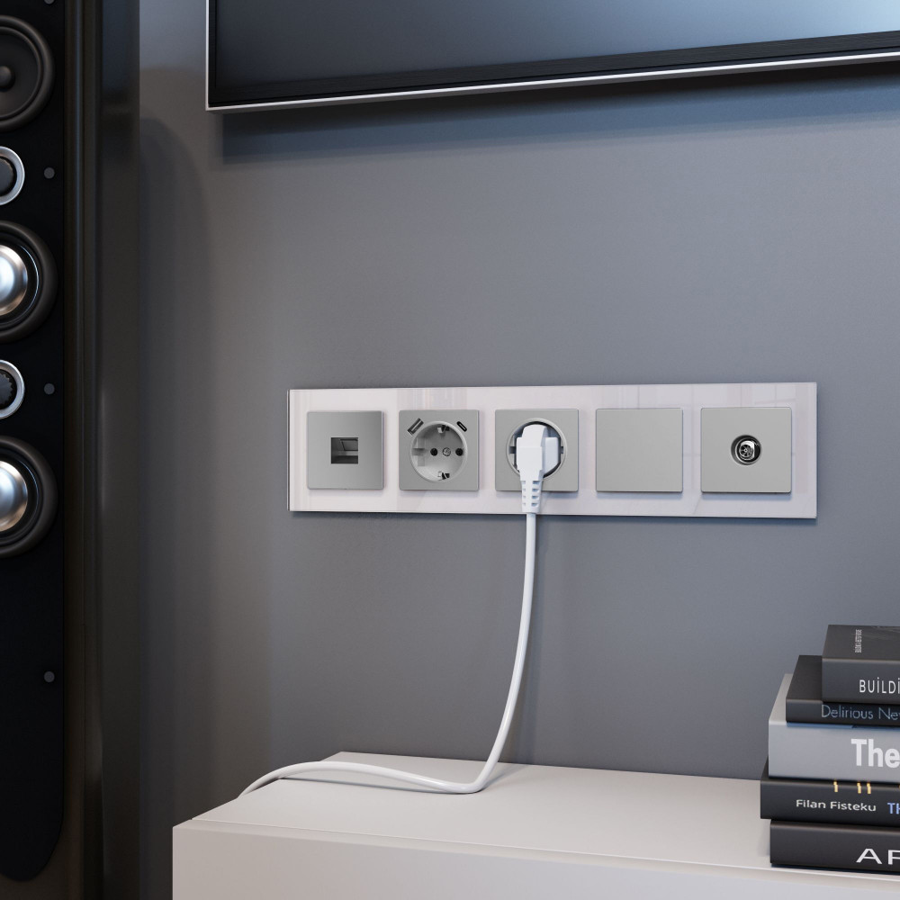 Технические характеристики Рамка из стекла на 5 постов Favorit дымчатый