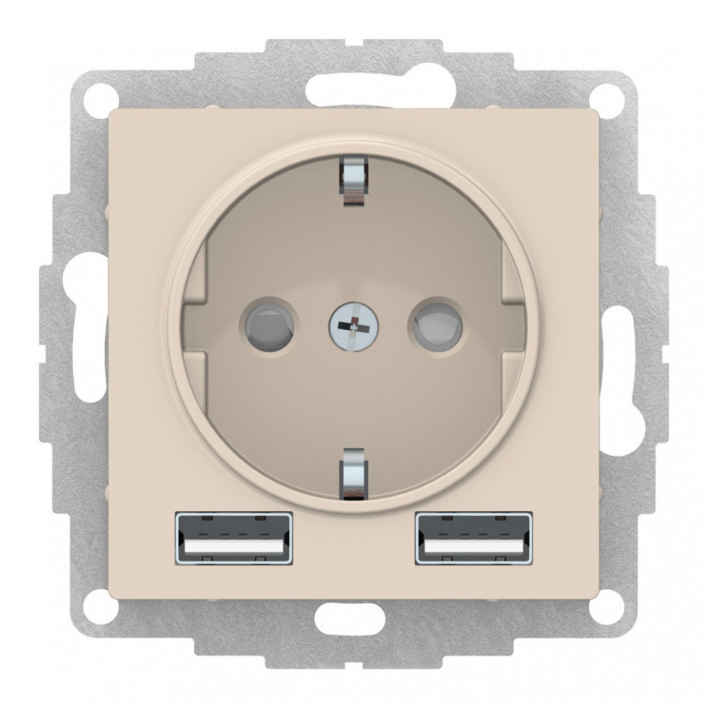 Розетка AtlasDesign SO + USB A+A, 5В/2,4А, 2х5В/1,2А, бежевый Schneider Electric ATN000230