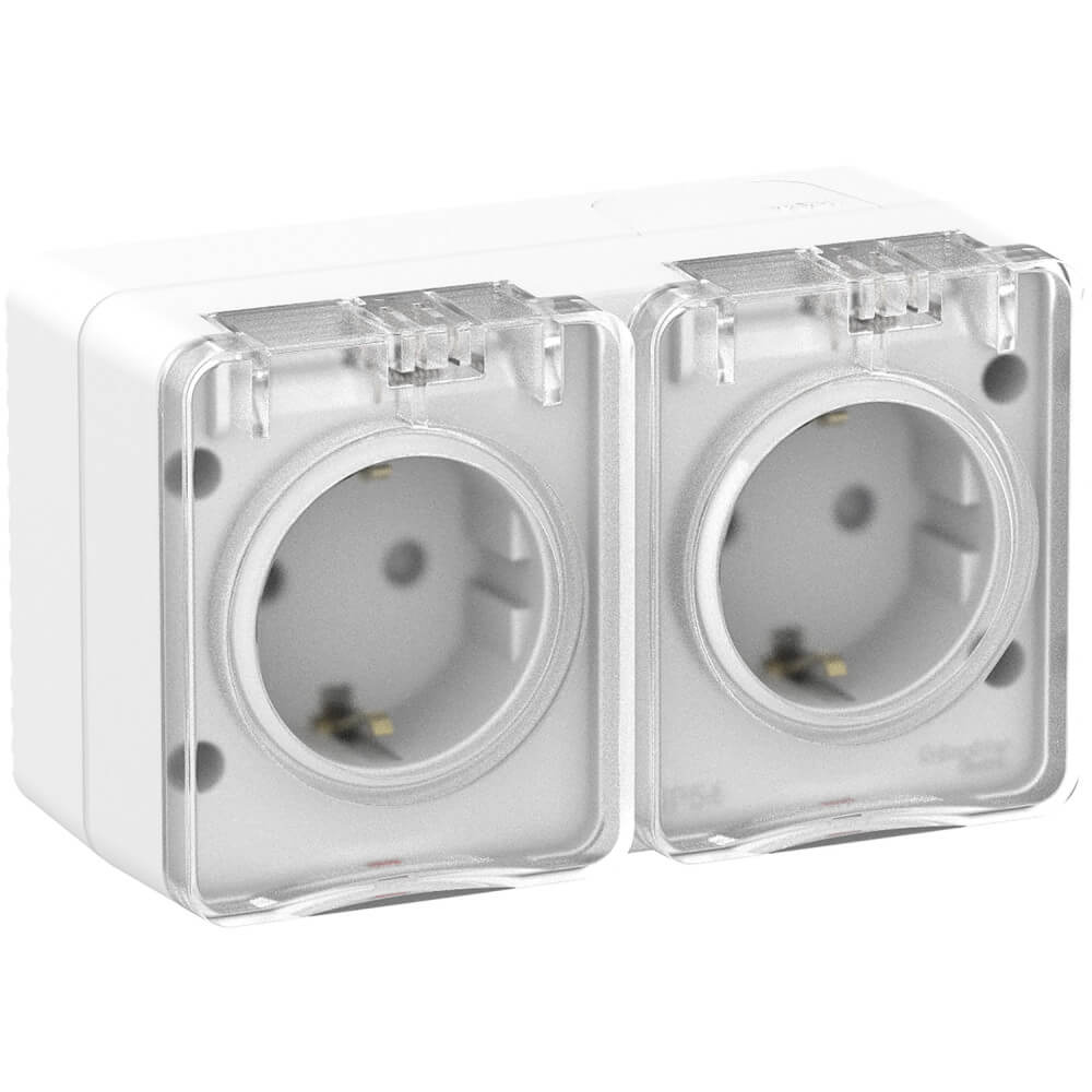 Розетка двойная влагозащищенная AtlasDesign Profi54 Systeme Electric IP54 16А 250В, белая (ATN540126) предназначена для безопасного подключения электроприборов в условиях повышенной влажности и запыленности. Изделие выполнено в формате накладного монтажа, что делает его удобным для установки при открытой проводке без штробления стен.