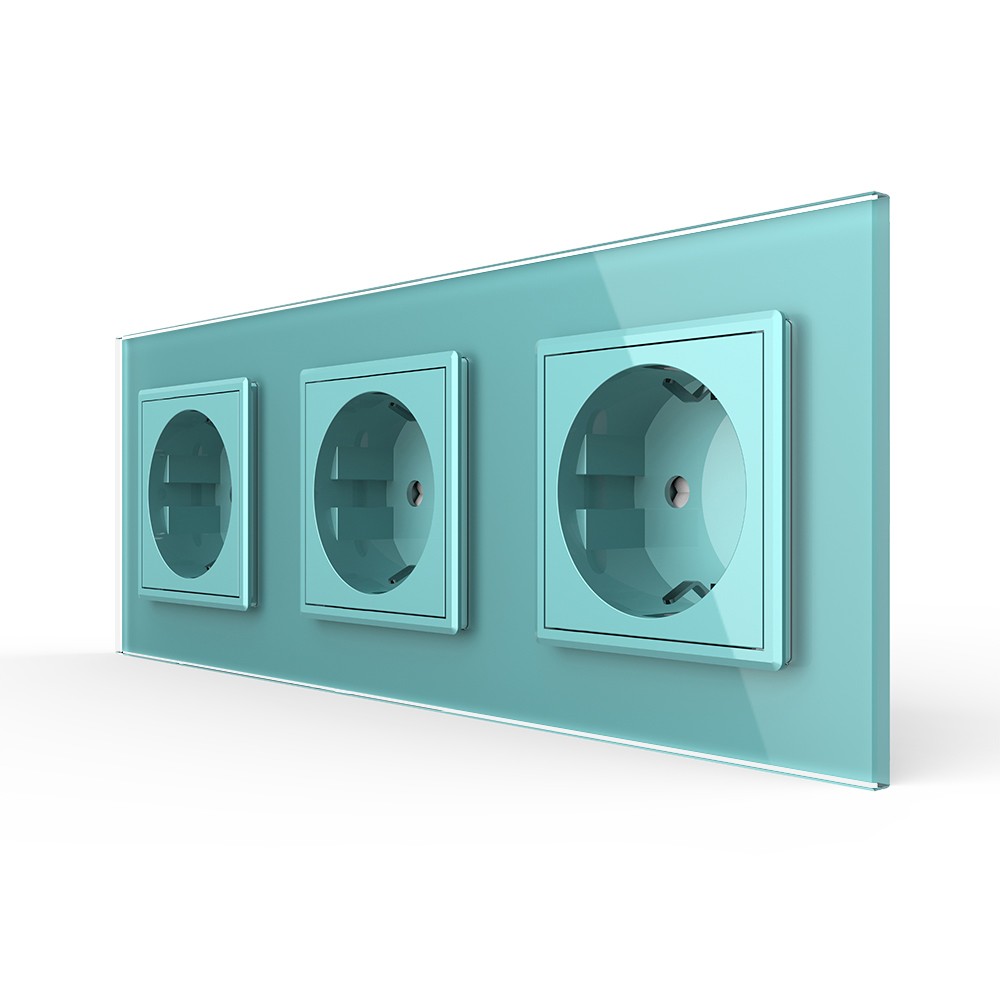 Розетка электрическая 16A Livolo, 3 поста, цвет зеленый