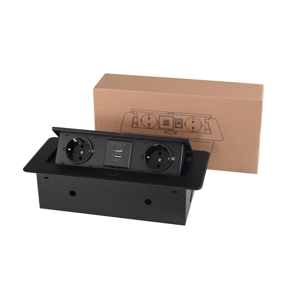 Розетка горизонтальная выдвижная 2 Euro 16A, 2 USB A с блоком 5В/2.1А RocketSocket, проводка, цвет черный