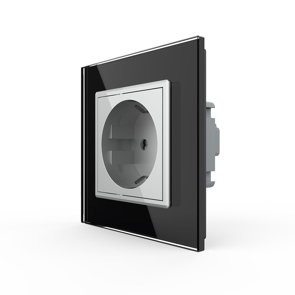 Технические характеристики Розетка Livolo 1 пост Серая с черной рамкой VL-C7C1EU-15/12