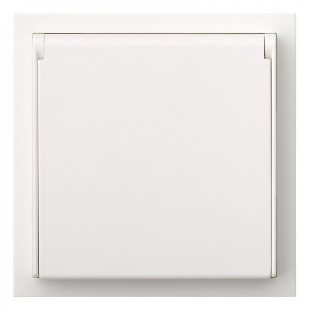 Влагозащищенная розетка состоит из трех компонентов — механизма розетки с винтовым подключением, лицевой панели с защитной крышкой и рамки с силиконовым уплотнителем, благодаря чему достигается высокая степень защиты от влаги и пыли IP44. Механизм розетки устанавливается в стандартный подрозетник с установочным диаметром 60 мм. Установка в многоместные рамки недоступна.