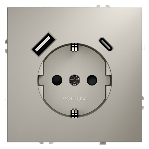 Универсальное и современное решение для дома, офиса или общественных помещений — встраиваемая розетка VOLTUM S70 (VLS040503) сочетает в себе евро-розетку с заземлением, защитные шторки и двойной USB-порт (тип A + тип C) для быстрой зарядки гаджетов.