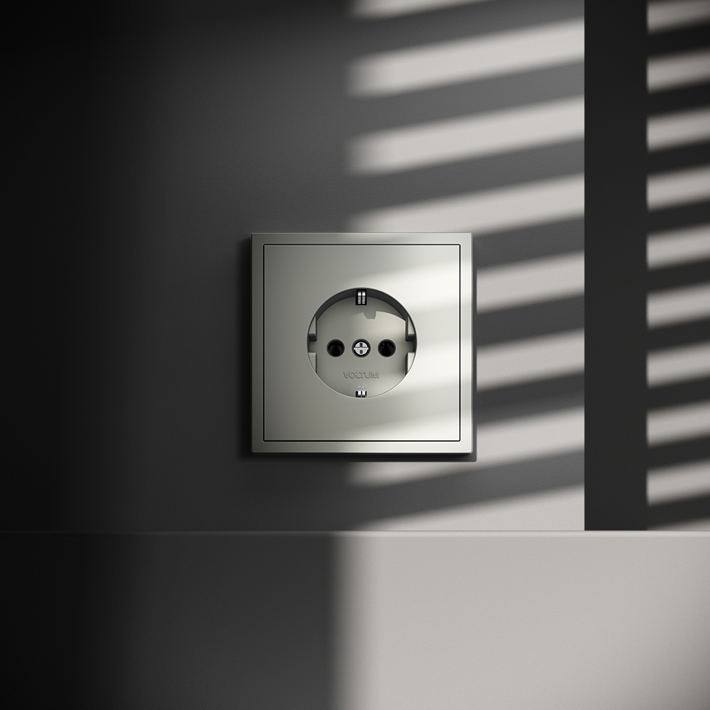 Розетка встраиваемая VOLTUM S70 с заземлением (сталь) VLS040105