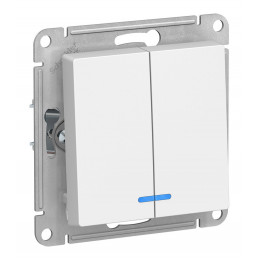 ATN000153Скопировать Двухклавишный выключатель Schneider Electric Atlasdesign Белый с подсветкой, сх.5а, 10АХ, механизм ATN000153