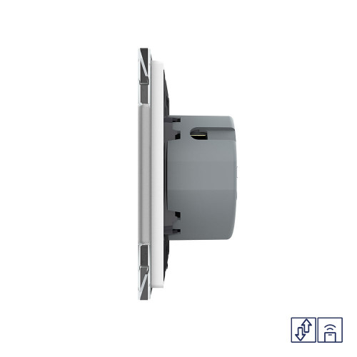 Сенсорный выключатель для штор с функцией радиоуправления со стеклянной рамкой LIVOLO Quadro используется для управления двигателями с подачей питания 220В с помощью пульта ДУ. Работает в режиме открыть/закрыть. Выключатель с сухим контактом.