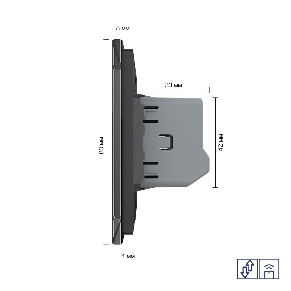 Сенсорный выключатель для штор с функцией радиоуправления со стеклянной лицевой панелью LIVOLO используется для управления двигателями с подачей питания 220В с помощью пульта ДУ. Работает в режиме открыть/закрыть. Выключатель с сухим контактом.