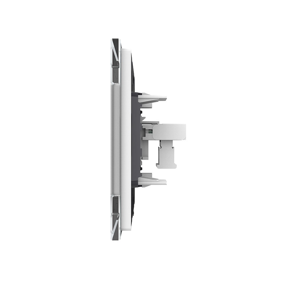 Устанавливается в круглый подрозетник в комплекте со стеклянной рамкой (в комплекте).