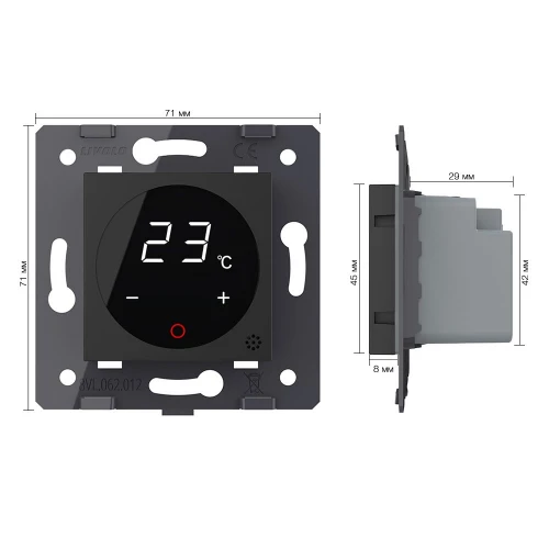 Механизм терморегулятора пола 16А с сенсорным управлением и датчиком воздуха LIVOLO предназначен для контроля и поддержания заданного значения температуры нагрева воздуха в помещении и ее регулировки, при изменении внешних условий. Cенсорный терморегулятор с лаконичным и современным дизайном. Терморегулятор имеет встроенный датчик температуры воздуха.