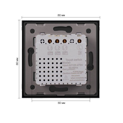 Технические характеристики Трехклавишный сенсорный выключатель Livolotouch EU стандарт, 1 пост, цвет черный