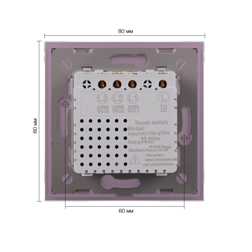 Технические характеристики Трехклавишный сенсорный выключатель Livolotouch EU стандарт, 1 пост, цвет розовый