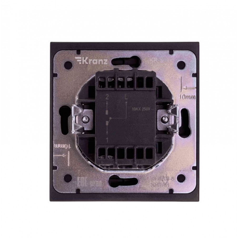 Выключатель проходной (переключатель) 10А, 1 клавиша, Kranz Miele Strong антрацит KR-78-0708-5 – надежный электрический аксессуар для современного дома и офиса. Одноклавишный выключатель отличается стильным дизайном с узкой рамкой и универсальным антрацитовым цветом, который гармонично сочетается с любым интерьером.